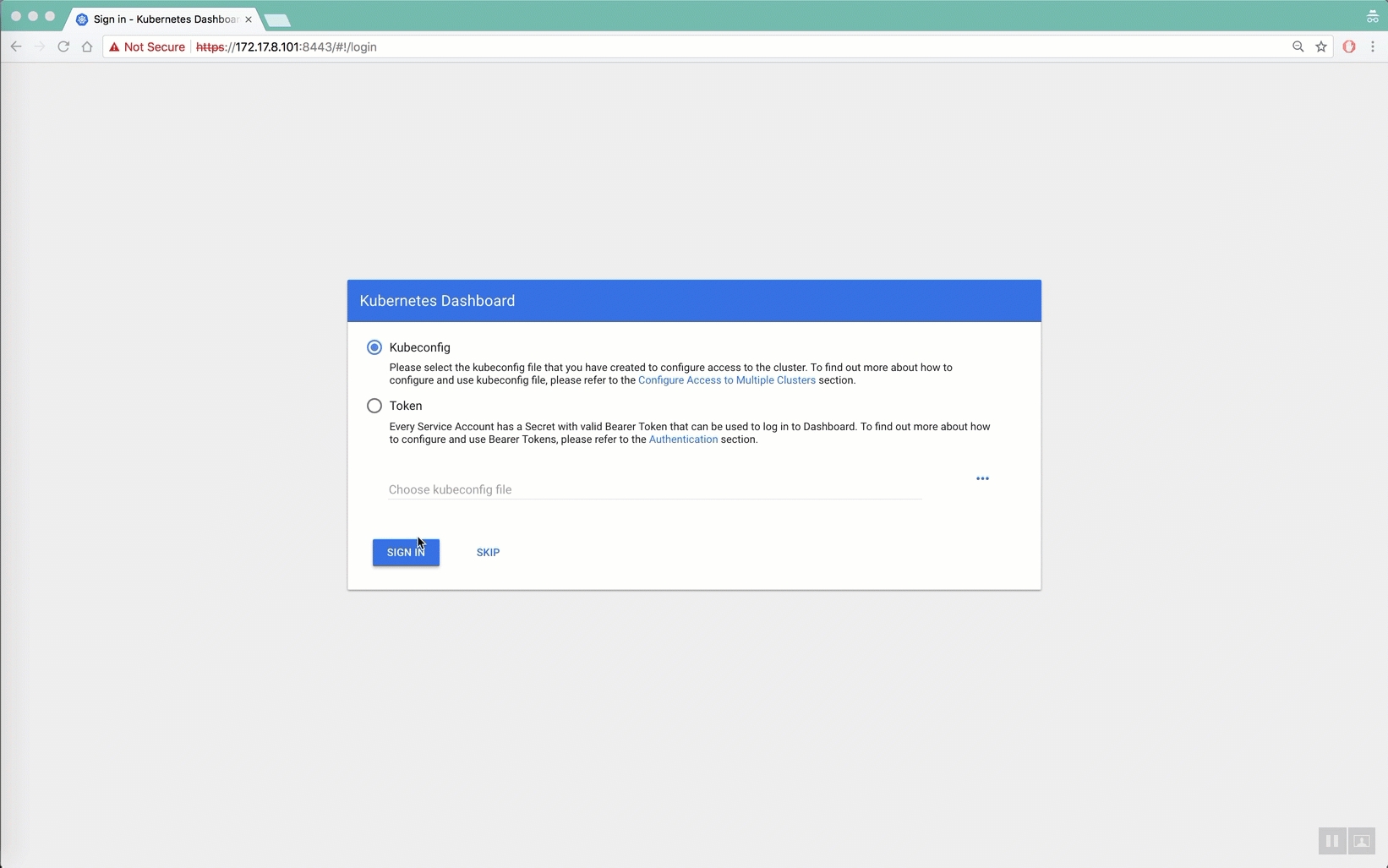 还可以直接通过dashboard UI来访问:https://172.17.8.101:8443