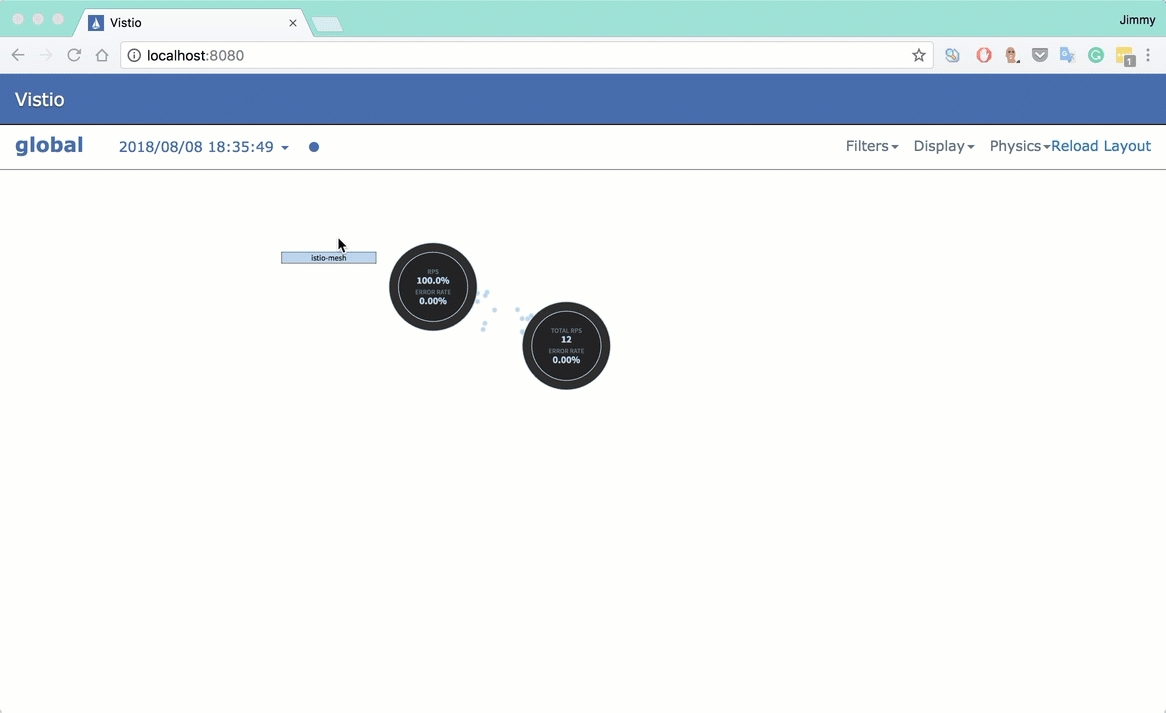 Vizceral是Netflix发布的一个开源项目,用于近乎实时地监控应用程序和集群之间的网络流量。Vistio是使用Vizceral对Istio和网格监控的改进。它利用Istio Mixer生成的指标,然后将其输入Prometheus。Vistio查询Prometheus并将数据存储在本地以允许重播流量。